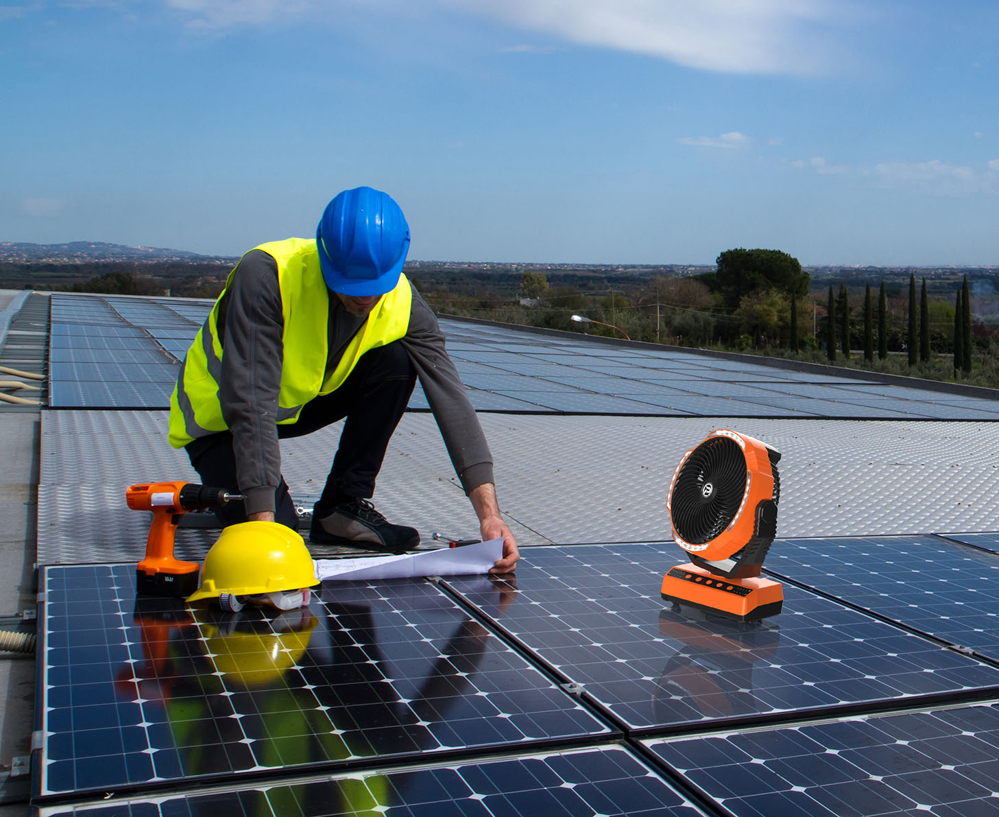 PANERGY F017 Rechargeable Auto-Oscillating Utility & Camping Fan